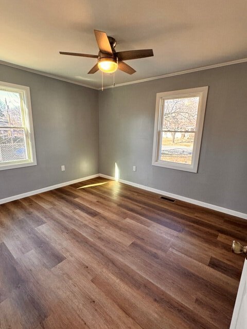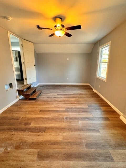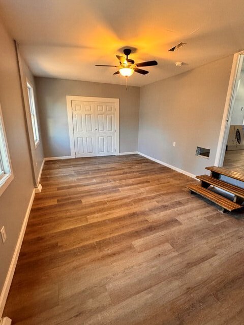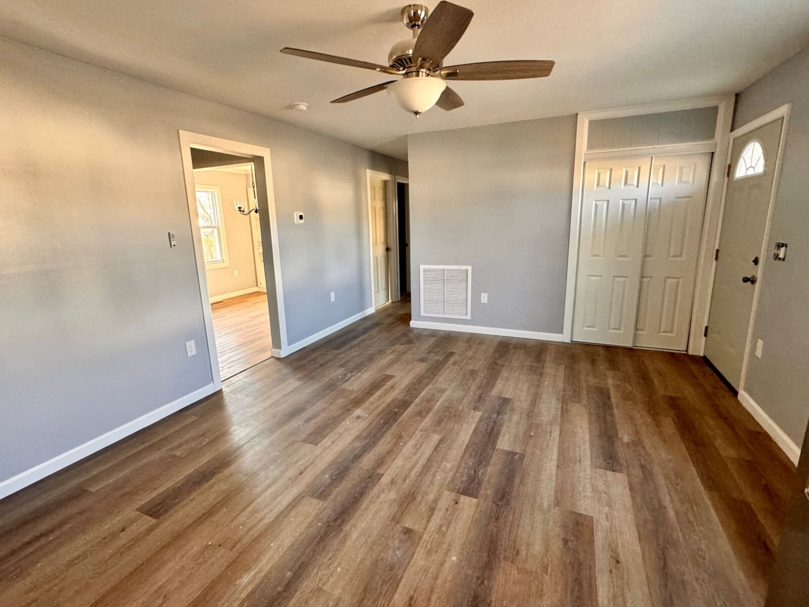 It features all laminate vinyl plank flooring, ceiling fans in each bedroom
